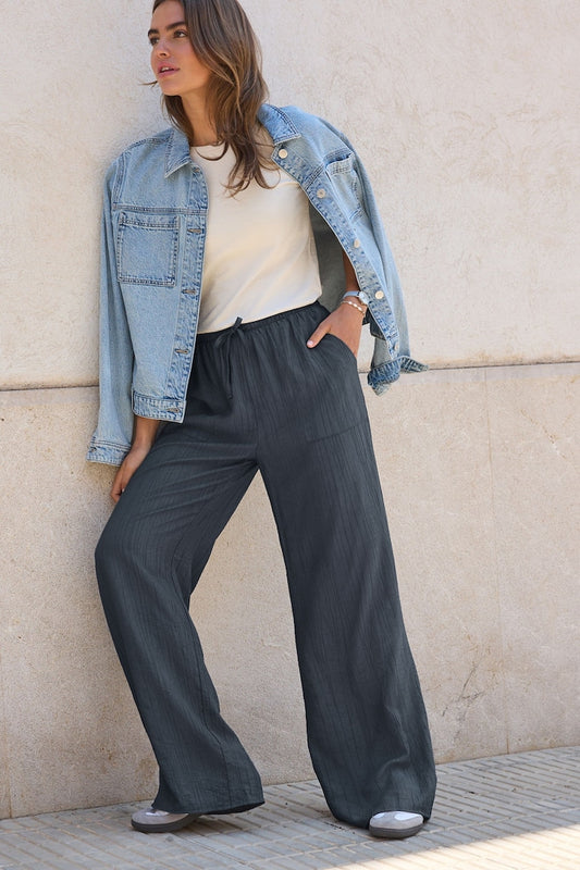 Elastic Back Wide Leg Trousers Navy pinstripe