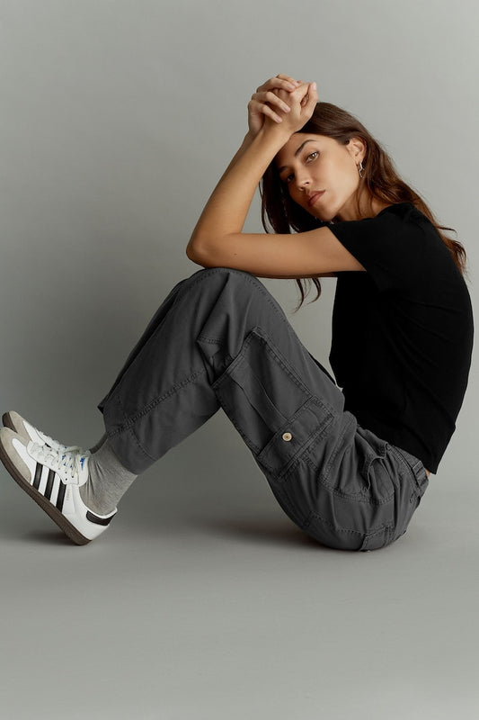 Adjustable Waist Cargo Trousers Charcoal Grey